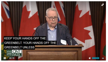 The Ontario Greenbelt Alliance Steering Committee responds to the Province's proposed law to return 7,400 acres of farmland and natural areas removed from Greenbelt late last year back into the Greenbelt.